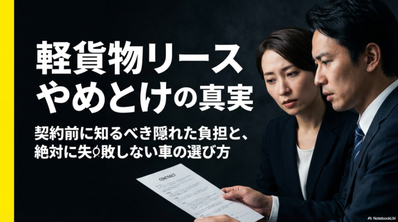 軽貨物リースはやめとけ、と見かけるとかなり不安になりますよね。 これから開業したいあなたにとっては、初期費用を抑えられそうなリースが魅力に見える一方で、本当に契約して大丈夫なのか、後から後悔しないのか、かなり気になるかなと思います。 実際... -