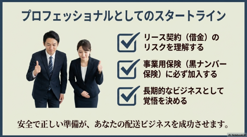 ここまで、「軽貨物 レンタカー 黒ナンバー」というキーワードの裏にある法的な実態と、車両調達の具体的な方法について見てきました。