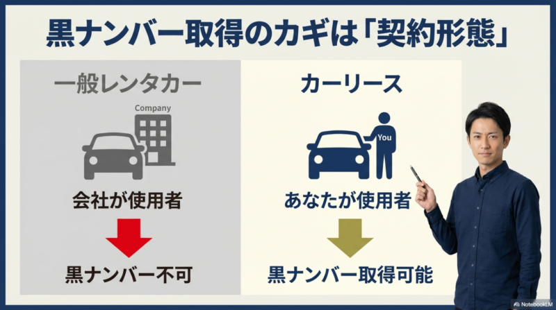 そして、この「使用者をドライバー本人にする」という法的手続きこそが、まさに「リース契約」の仕組みなんです。