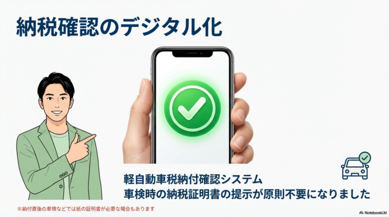 対策はシンプルで、「車検日から逆算して納付を済ませる」「名義変更が絡むなら工場に事前共有する」「支払い証跡(領収印のある控え等)を当面保管する」です。  紙が原則不要になっても、トラブル時の保険として“確認できる材料”を持っておくのが現場では強いです。