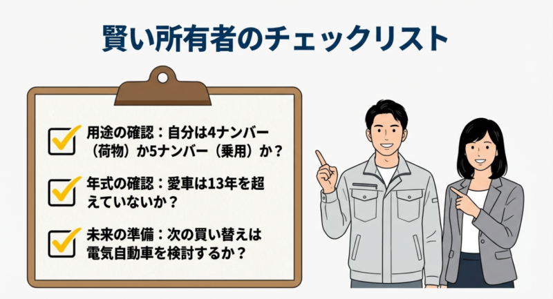 • 登録区分の最適化:事業利用なら黒ナンバーを検討し、保険も含めてトータル比較する