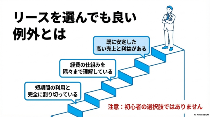 ここからは、ただ不安を煽るのではなく、どう判断すれば後悔しにくいかを具体的に見ていきます。 リースを完全否定するのではなく、向いている人と向かない人を分けて考えるのがポイントです。